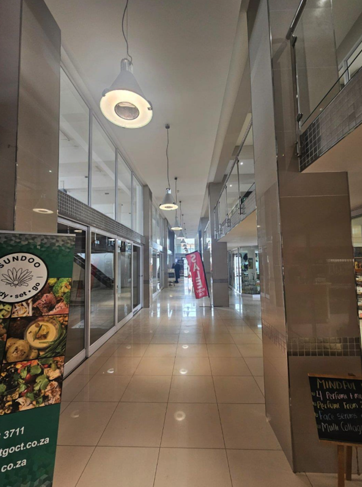 This unit is located on the first floor of a well-established mall. It has direct access to a secure parking bay. This safe and secure unit offers a unique blend of functionality and aesthetic appeal, making it an ideal space for retail, office, or a combination of both. The interior features an open-plan layout, providing flexibility for various business setups and can be customised to your requirements. A small kitchenette is also included.